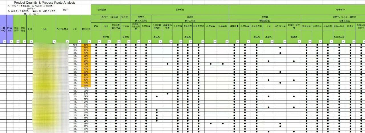 PQPR (Product Quantity Process Routing) analüüsi abil tuvastas meeskond erinevate toodete protsesside erinevused, klassifitseeris tooted ja paigutas tootmisliinid ratsionaalselt, et parandada tootmise efektiivsust.