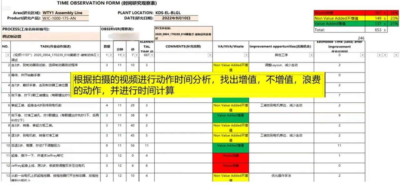 Ajaanalüüs, mis on varaseim sisemiselt kasutusele võetud süstemaatiline parendustööriist, on kogunud tugeva parenduskogemuse. Samuti mängis see teedrajavat rolli üldises VSM-i täiustamises – toimides nii varasemate täiustuste jätkuna kui ka lingina järgnevate projektispetsiifiliste täiustustega. Täiustusmeeskonnad määrasid igas protsessis töötajate tegevusi filmima pühendunud töötajad vastavalt standardsetele tööaja põhimõtetele. Meeskonnaliikmed ja isegi eesliinitöötajad vaatasid ühiselt videoid korduvalt üle, koostasid ja analüüsisid tööliigutusi ning viisid läbi kollektiivse ajurünnaku, et tuvastada parendusvõimalusi ja teha ettepanekuid, koostades lõpuks parendusplaani.